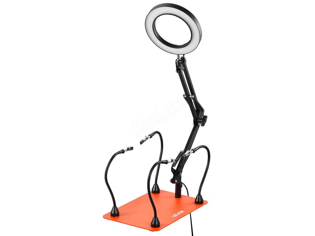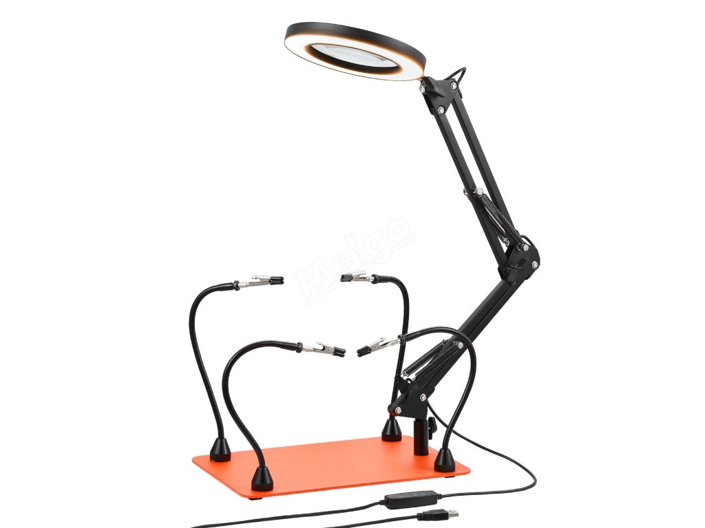 Pomocný držák pro pájení, 4 ramena, 3× LED lupa, protiskluz