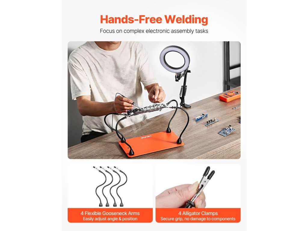 Naše magnetické pomocné ruce jsou ideální pro elektroniku, pájení, čtení, osvětlení, údržbu a také pro kutilské projekty, jako je zdobení nehtů, šití, malování a další přesné úkoly.