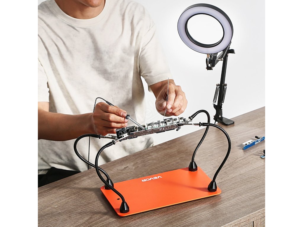 Naše pomocná pájecí ramena jsou vybavena 4 flexibilními rameny, která se mohou volně ohýbat o 360°, což umožňuje snadné nastavení úhlu a výšky pro přesné umístění dílů. Jsou ideální pro projekty jakékoli velikosti, zcela vám uvolní ruce a zefektivní práci.