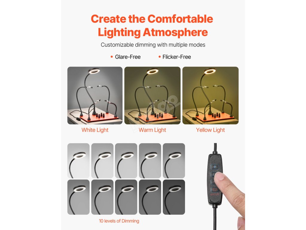 Tato magnetická ruční pájecí stanice nabízí 3 teploty barev a 10 úrovní jasu, které odpovídají různým prostředím a požadavkům na úkoly. Měkké světlo bez blikání snižuje oslnění a únavu očí, takže práce je pohodlnější a efektivnější.