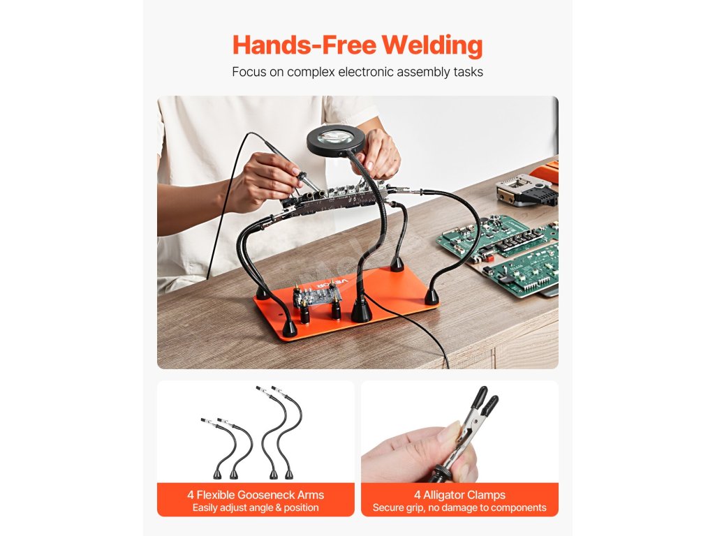 Naše magnetické pomocné ruce jsou ideální pro elektroniku, pájení, čtení, osvětlení, údržbu a také pro kutilské projekty, jako je zdobení nehtů, šití, malování a další přesné úkoly.