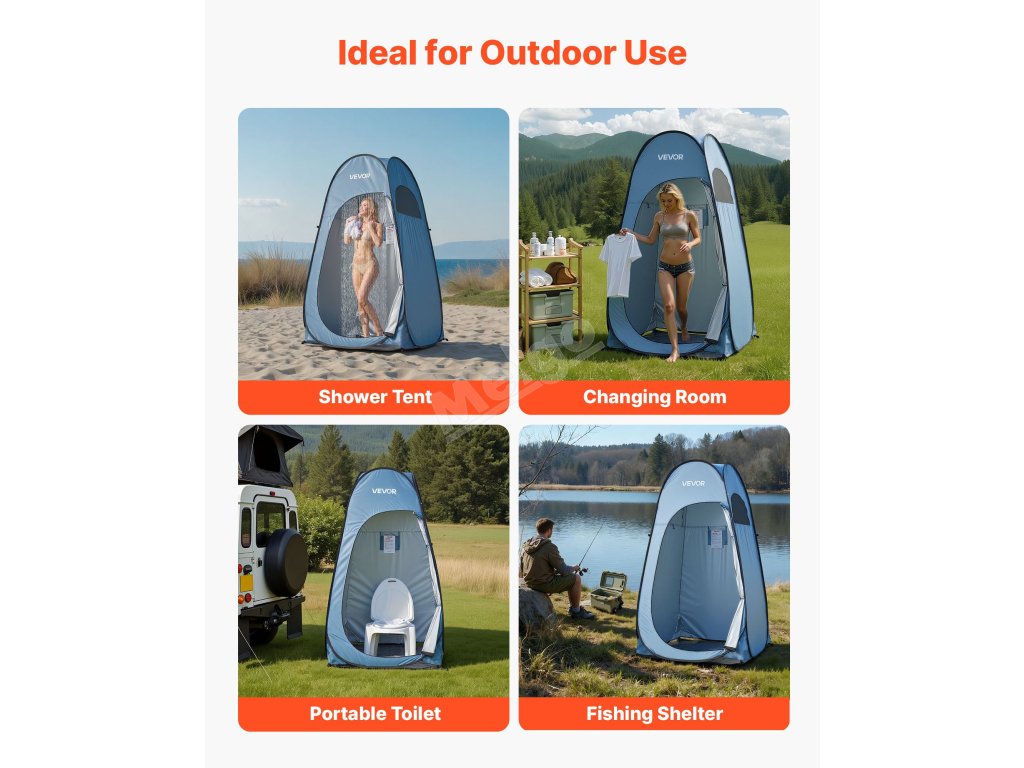 Náš sprchový stan je lehký a přenosný, vhodný pro kempování, výlety na pláž, fotografování nebo rybaření. Poskytuje soukromý prostor pro převlékání, sprchování nebo odpočinek pod širým nebem.