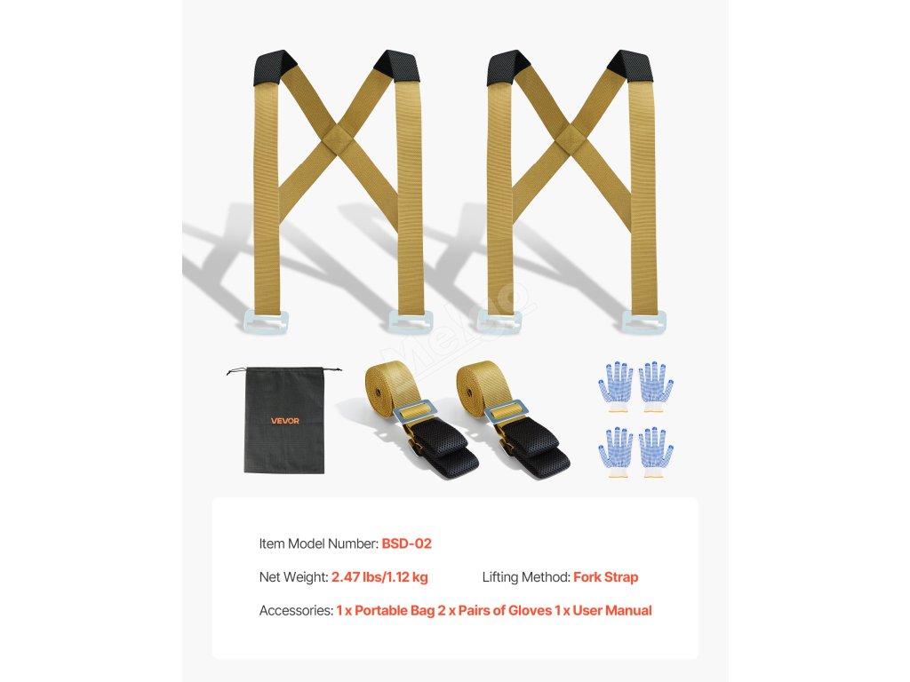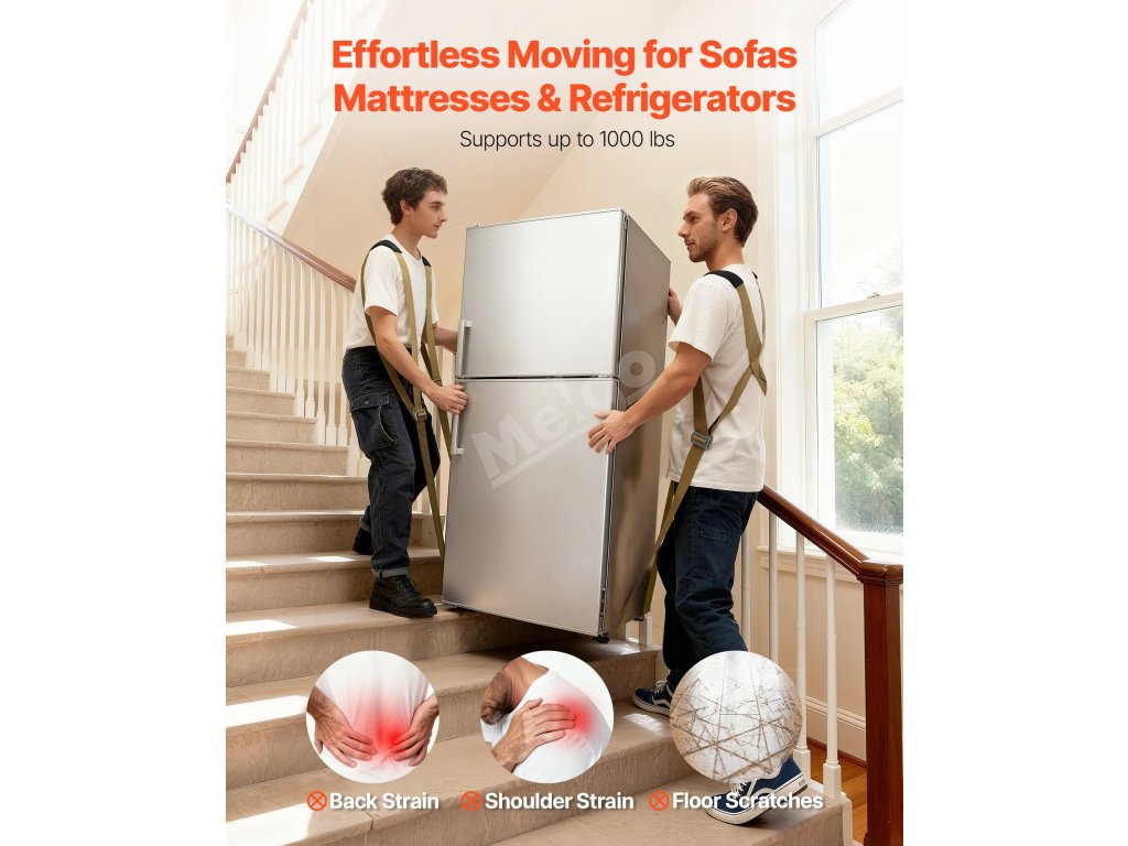 Tento popruh na stěhování nábytku je určen pro domácí i komerční zvedání. Účinně rozkládá hmotnost předmětů, snižuje tlak na bederní páteř a paže a zabraňuje přetížení svalů a kyčlí. Zabraňuje také tomu, aby se nábytek při zvedání poškrábal o podlahu, a usnadňuje tak zvedání.