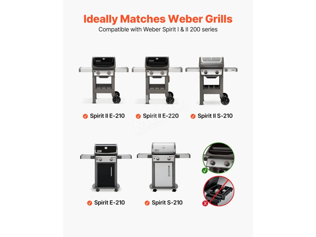Tyto náhradní díly grilovací tyče, vyrobené pomocí vysoce přesných forem, mají přesné rozměry pro grily Weber Spirit I a II řady 200, takže je můžete snadno vyměnit a bezpečně umístit do grilu, aniž by se viklaly nebo uvolňovaly. Tato konstrukce zaručuje bezpečné používání.