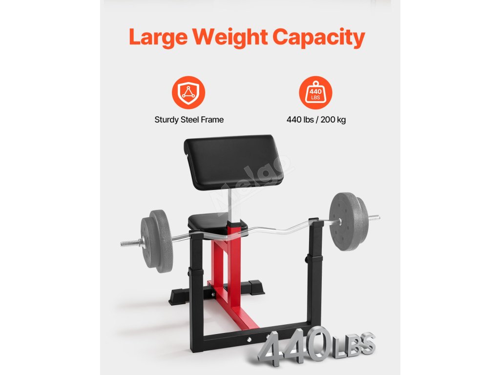 Tento bicepsový lis je navržen tak, aby zvládl až 440 liber (200 kg), a je ideální pro začátečníky i zkušené vzpěrače. Jeho působivá kapacita podporuje intenzivní, progresivní trénink pro neustálý růst svalů.