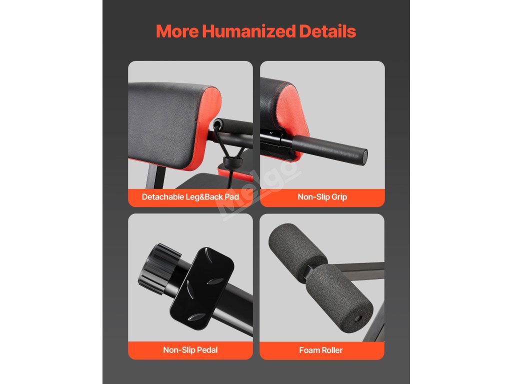 Tato římská židle vám pomůže procvičit celé tělo, od paží a zad až po hrudník, hýždě, hamstringy a jádro těla. Je to váš univerzální fitness partner pro komplexní trénink.