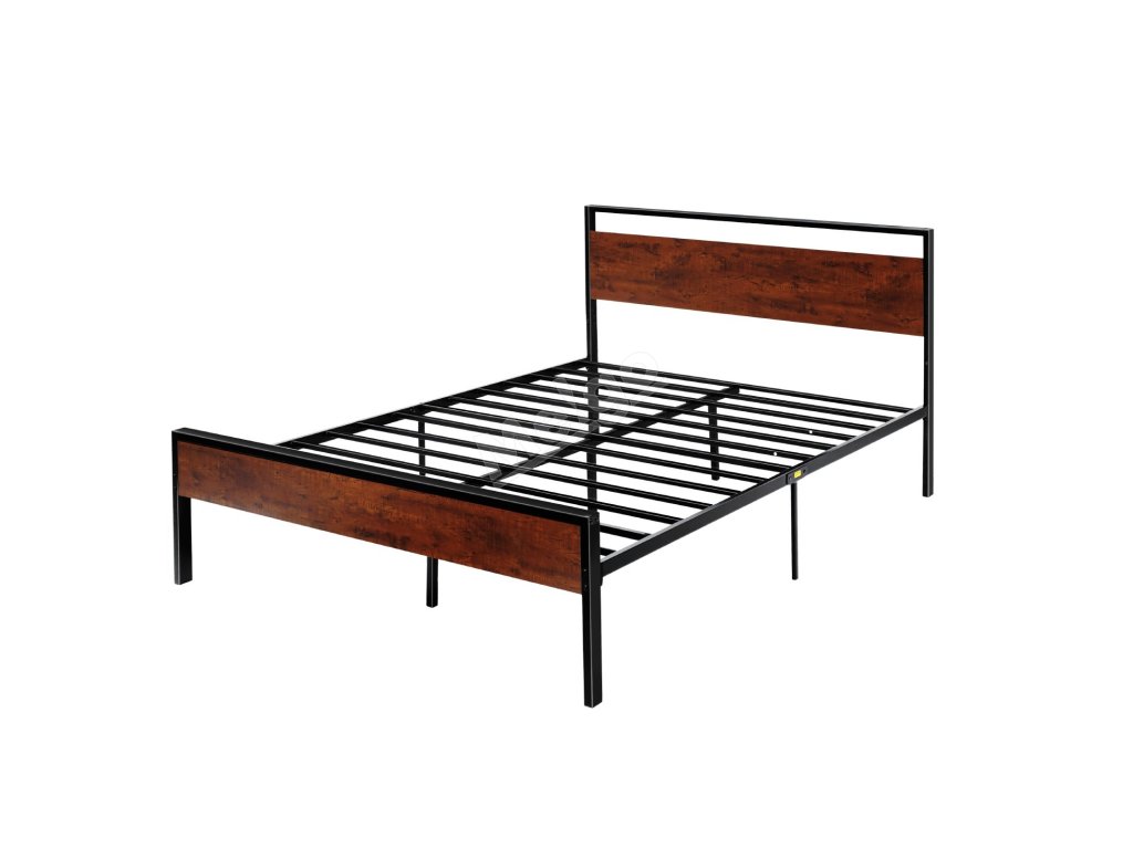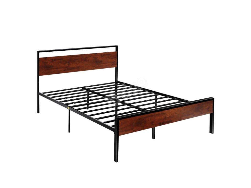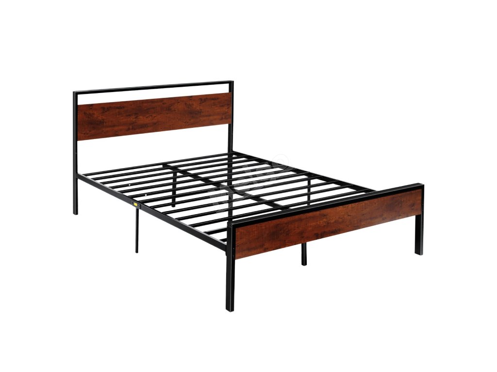 Postel queen size kovový rám 35 cm, dřevěné čelo, úložný prostor