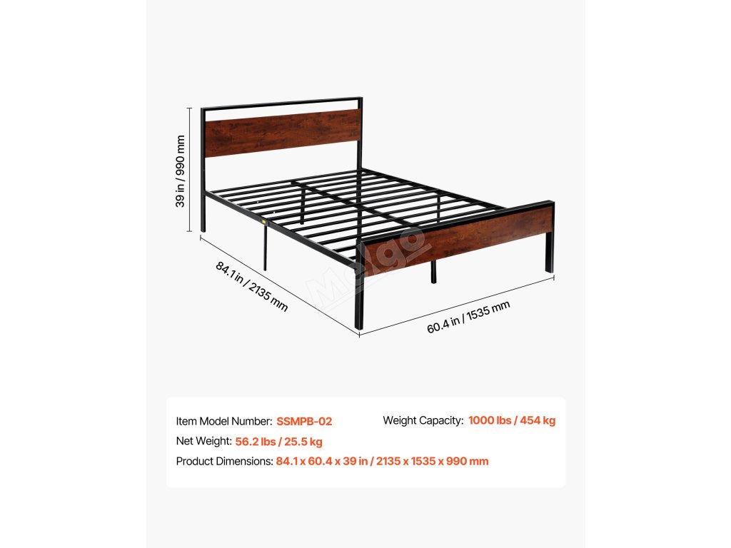 Náš rám postele velikosti queen má nosnost až 1 000 liber, takže snadno unese matraci i uživatele a zajistí vám pohodlný spánek každou noc.