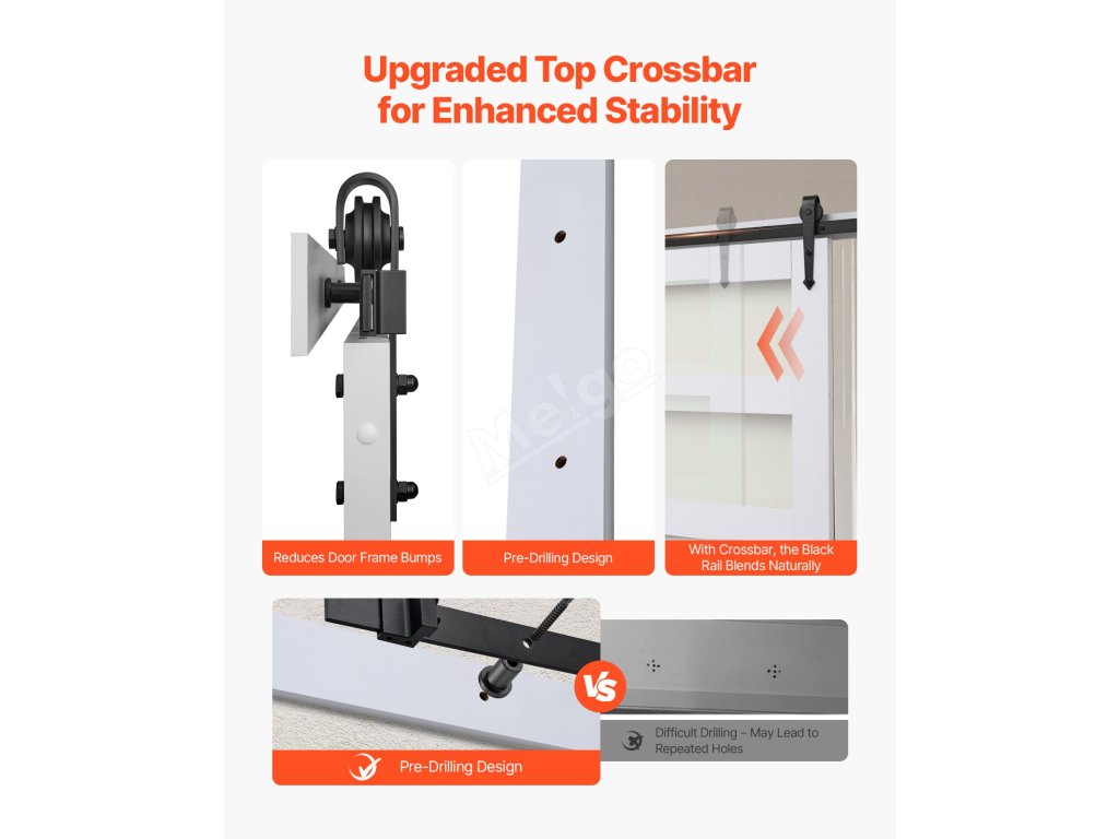 Osm flexibilních kombinací se přizpůsobí různým velikostem dveří ve vaší domácnosti. Jednoduchým nastavením a kombinacemi zajistíte plynulý pohyb posuvných dveří a snížíte hluk a kolísání.
