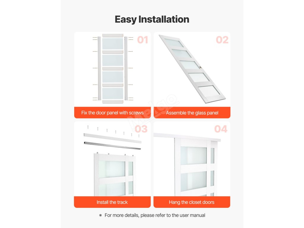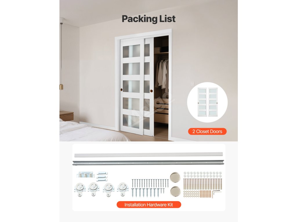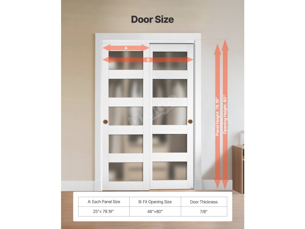 Díky odolnému dřevěnému rámu, voděodolnému povrchu a matnému tvrzenému sklu 5-Lite jsou naše posuvné dveře skříně hladce posuvné a zároveň šetří místo. Rozměry každé dveřní výplně: 635 mm (š) x 1986 mm (v), tloušťka: 22 mm. Vhodné pro dveřní otvory o rozměrech 1219 x 2032 mm.
