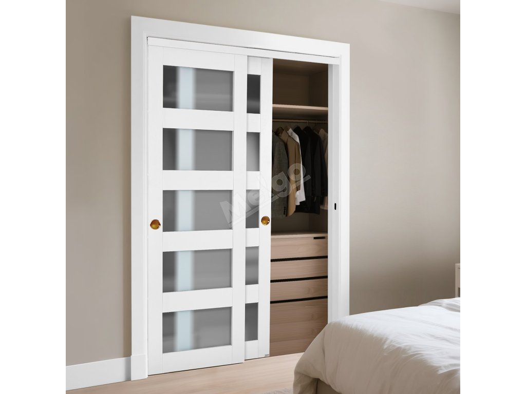 Posuvné dveře do skříně 1219 mm × 2032 mm, 5 polí matné sklo, MDF s PVC
