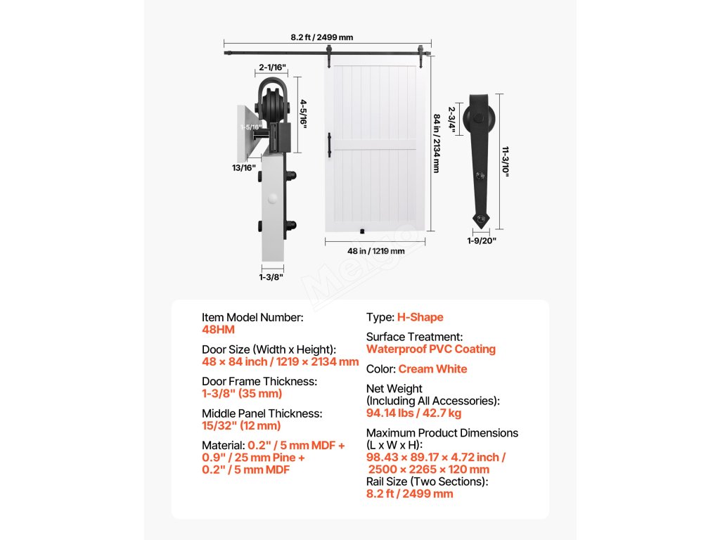 | Veľkosť dverí (šírka x výška) | 48 x 84 palcov / 1219 x 2134 mm |