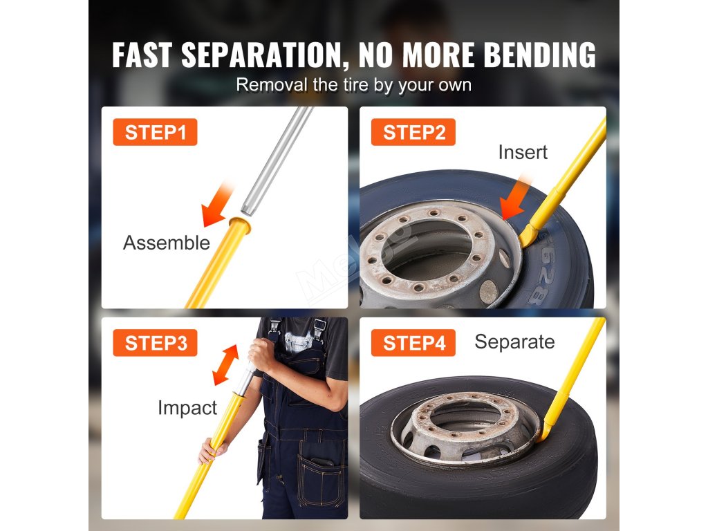 Jeho uživatelsky přívětivý design zajišťuje snadné ovládání, takže je přístupný uživatelům všech úrovní. Ať už jste profesionální technik, nebo domácí kutil, tento nástroj poskytuje pohodlí a snadné použití pro efektivní oddělování patek pneumatik.