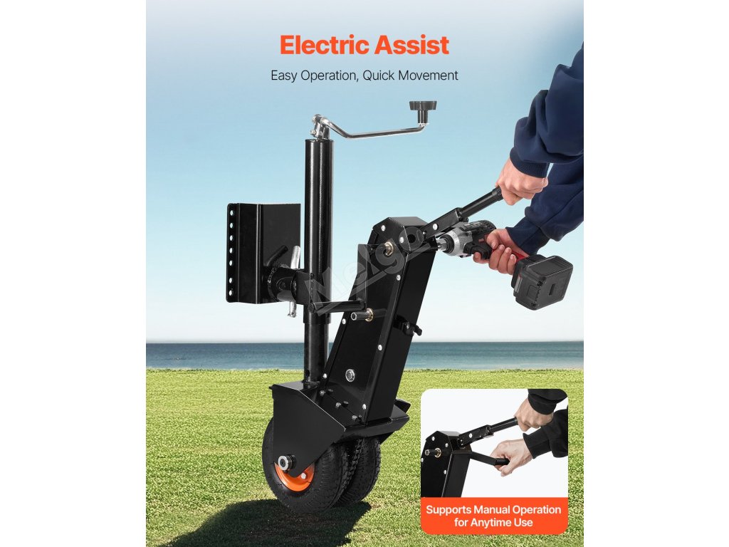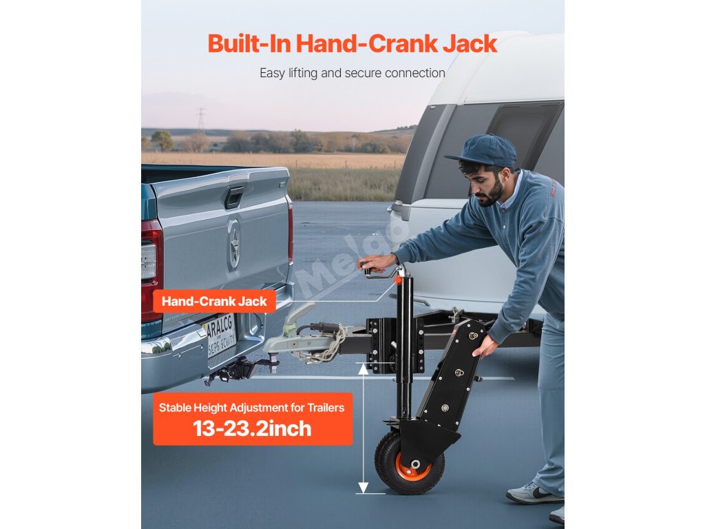 Tento přívěsný vozík lze pohánět ručními i elektrickými klíči a má otočnou, skládací konstrukci pro snadné skladování. Je vhodný pro různá vozidla včetně obytných vozů, nákladních automobilů, přívěsů na grilování a lodí.