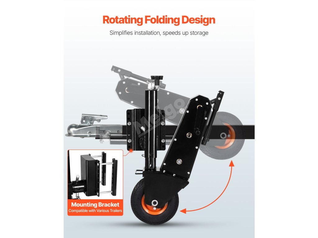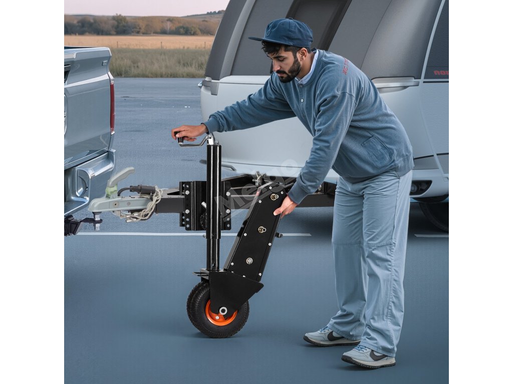 Tento zvedák přívěsu má snadno instalovatelné držáky, je kompatibilní s různými přívěsy a je vybaven otočnou funkcí pro pohodlné parkování nebo skladování.