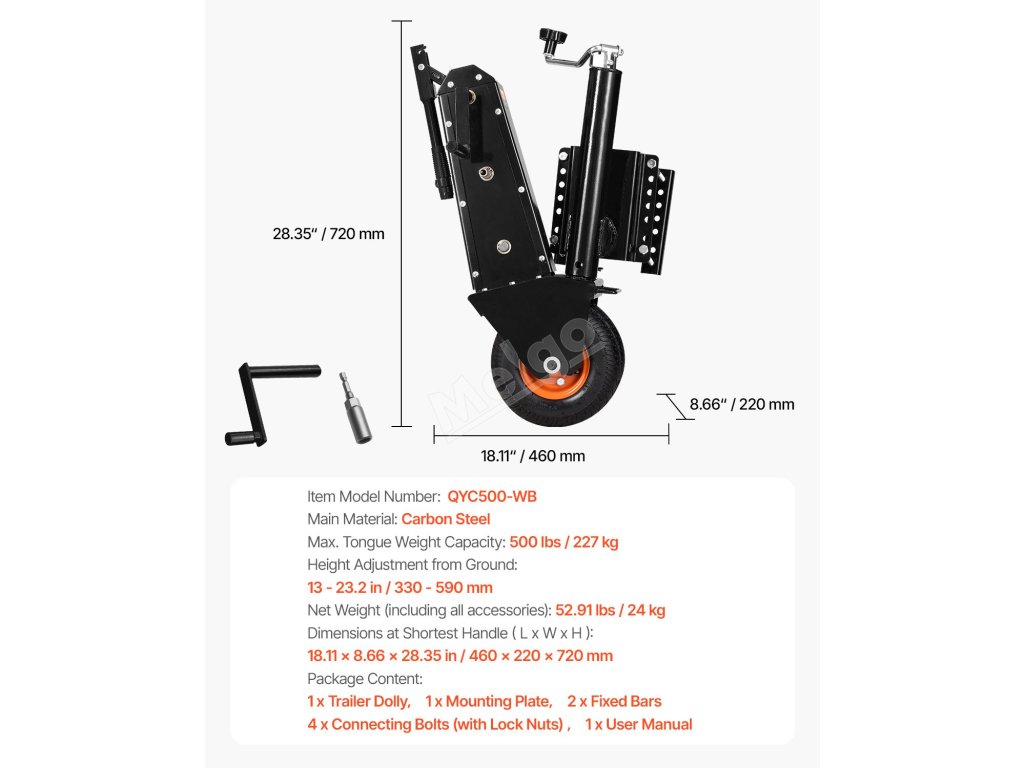 Posuvník přívěsu 500lbs, výška 13-23.2 inch, ruční/elektrický