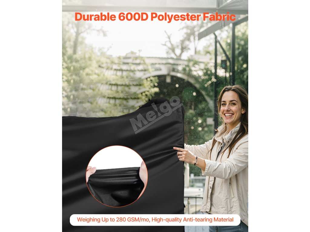 Vyrobeno ze 3 vrstev vysoce kvalitních materiálů: vrstva PVC, vrstva polyesterových vláken a nepromokavá vrstva. Tento kryt grilu zajišťuje odolnost proti vodě. Čtyři rohy jsou zesíleny, aby odolaly opotřebení. Šití je pevně utkáno, aby se zvýšila vodotěsnost.