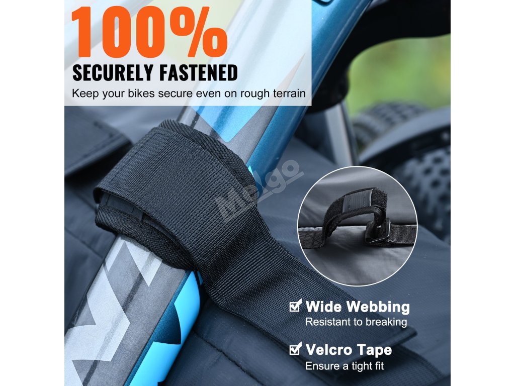Podložka na zadní dveře je vybavena 5 robustními popruhy na kola, které dokonale padnou na nosič kol. Díky vysoké odolnosti, silným popruhům a zapínání na suchý zip zůstanou vaše kola bezpečně na svém místě i na nerovném terénu.