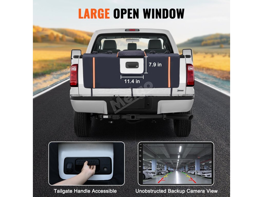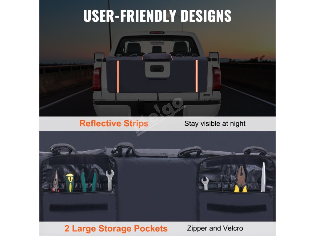 Díky zadnímu otevíracímu okénku si užijete vynikající uživatelský zážitek. Nezakrývá kameru ve zpětném zrcátku. Výrazné reflexní pruhy zvyšují viditelnost v noci. Dvě velkokapacitní úložné tašky navíc poskytují organizovaný úložný prostor pro vaše nářadí a nezbytné věci.