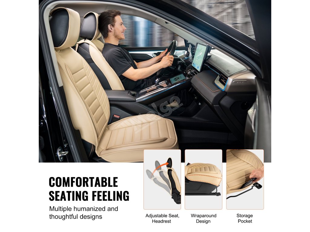 Potahy na přední sedadla, 2 ks, umělá kůže, s airbagy, béžová