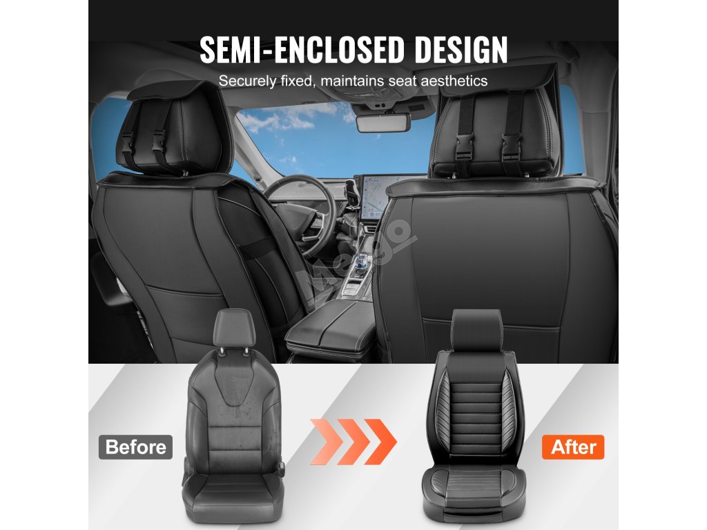 Naše poťahy sedadiel sú vyrobené z prvotriednej priedušnej umelej kože, ktorá je vhodná na všetky ročné obdobia. Ľahko sa čistia a sú odolné voči nečistotám, vďaka čomu udržia interiér vášho auta v poriadku. Nezasahujú do airbagov, čím zabezpečujú bezpečnú jazdu, a dodávajú sa s viacerými úchytmi na bezpečné upevnenie.