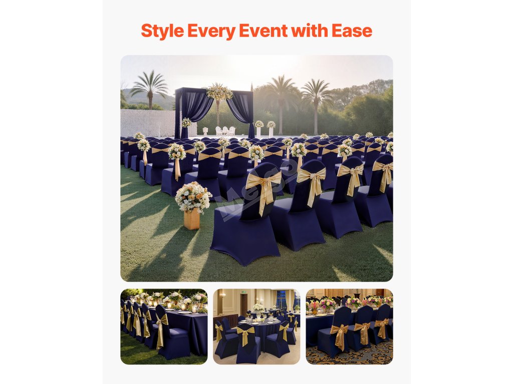 Tato elegantní sada potahů na banketové židle je vyrobena z vysoce kvalitní strečové spandexové tkaniny a zvýrazní jednotný vzhled vašich židlí. Je ideální pro svatby, promoce, narozeniny a další zvláštní příležitosti a dodá každé události nádech sofistikovanosti a stylu.