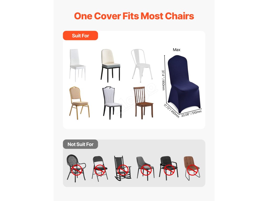 Potahy na židle 50 ks, polyester-spandex, do 20.08×17.72×37.4 in
