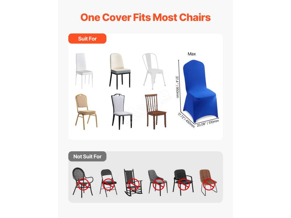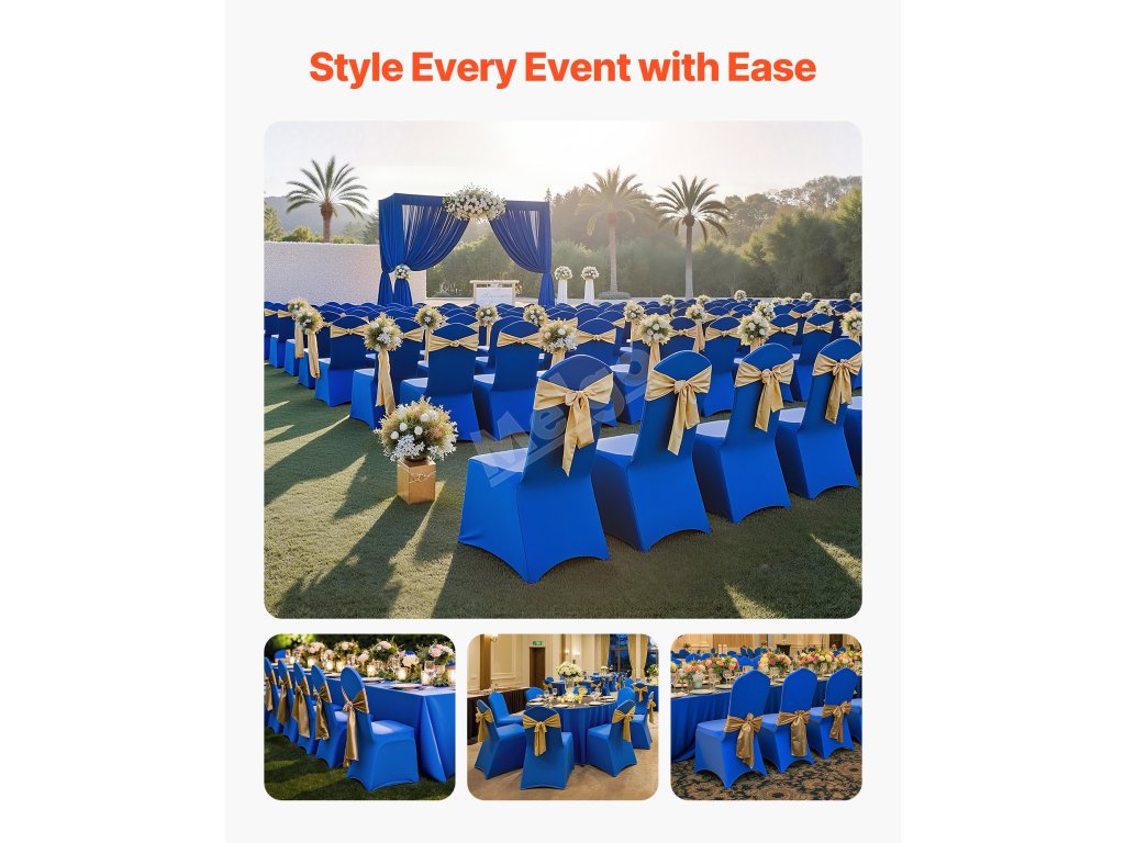 Tato elegantní sada potahů na banketové židle je vyrobena z vysoce kvalitní strečové spandexové tkaniny a zvýrazní jednotný vzhled vašich židlí. Je ideální pro svatby, promoce, narozeniny a další zvláštní příležitosti a dodá každé události nádech sofistikovanosti a stylu.