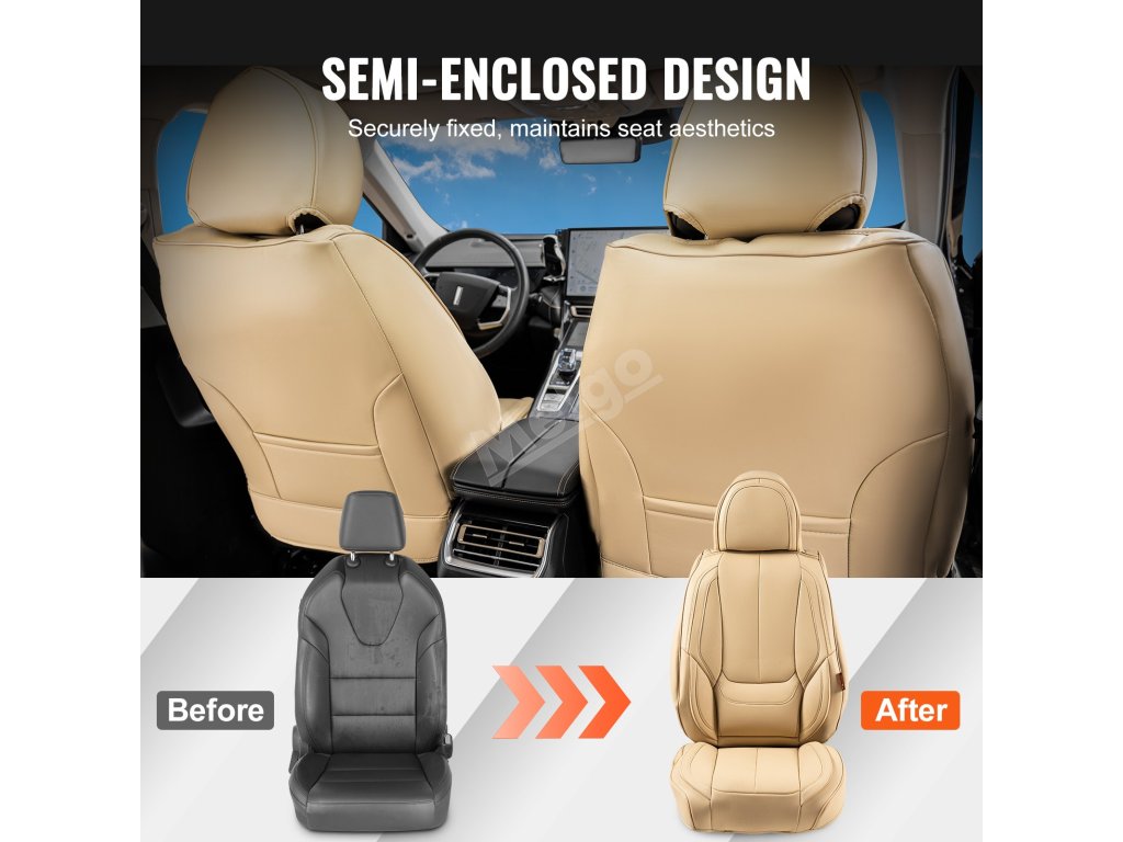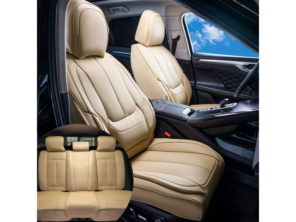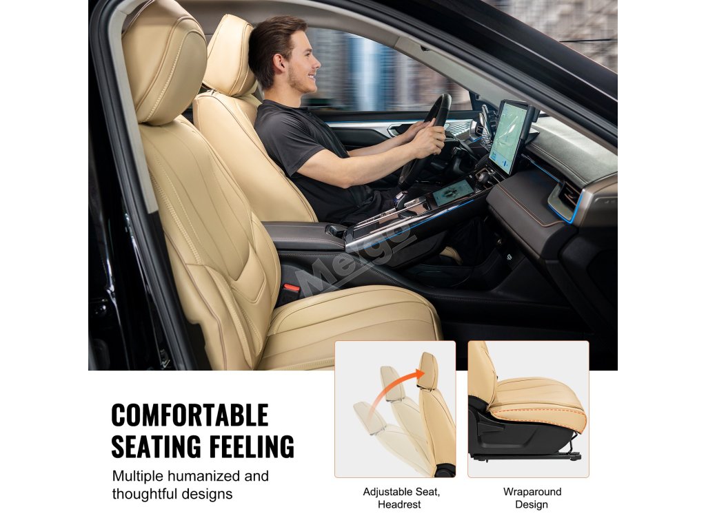 Naše poťahy sedadiel sú vyrobené z hrubého priedušného materiálu z umelej kože a ponúkajú jemný a mäkký dotyk, vhodný na celoročné používanie. Chránia vaše sedadlá pred rozliatím, škvrnami, chlpmi domácich miláčikov a škodlivým UV žiarením, čím zabezpečujú ich trvanlivosť.