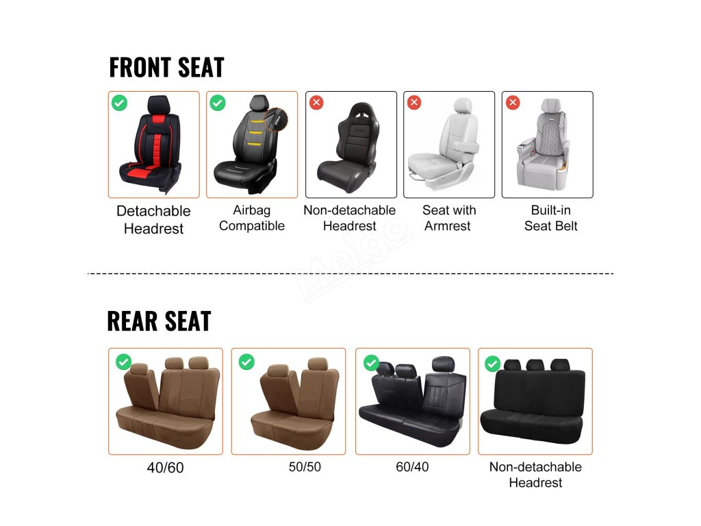 Vhodné pre vozidlá s odnímateľnými opierkami hlavy, ako sú sedany, SUV, pickupy a nákladné vozidlá. Pred nákupom si zmerajte rozmery sedadla, aby ste si vybrali správnu veľkosť poťahu.