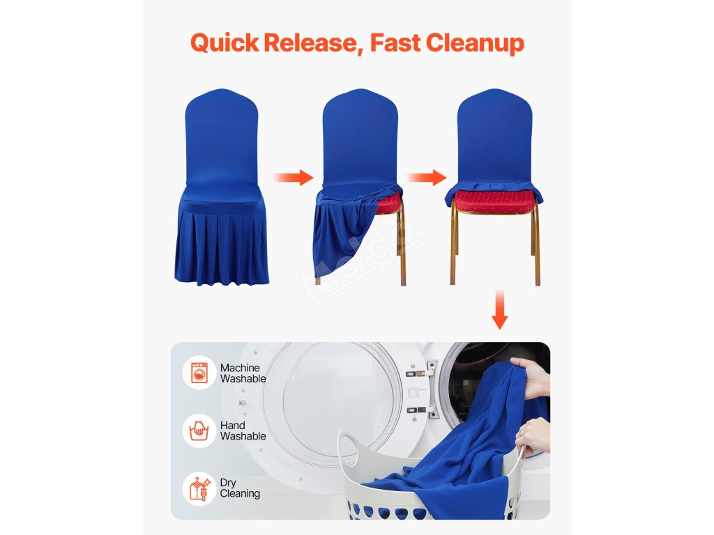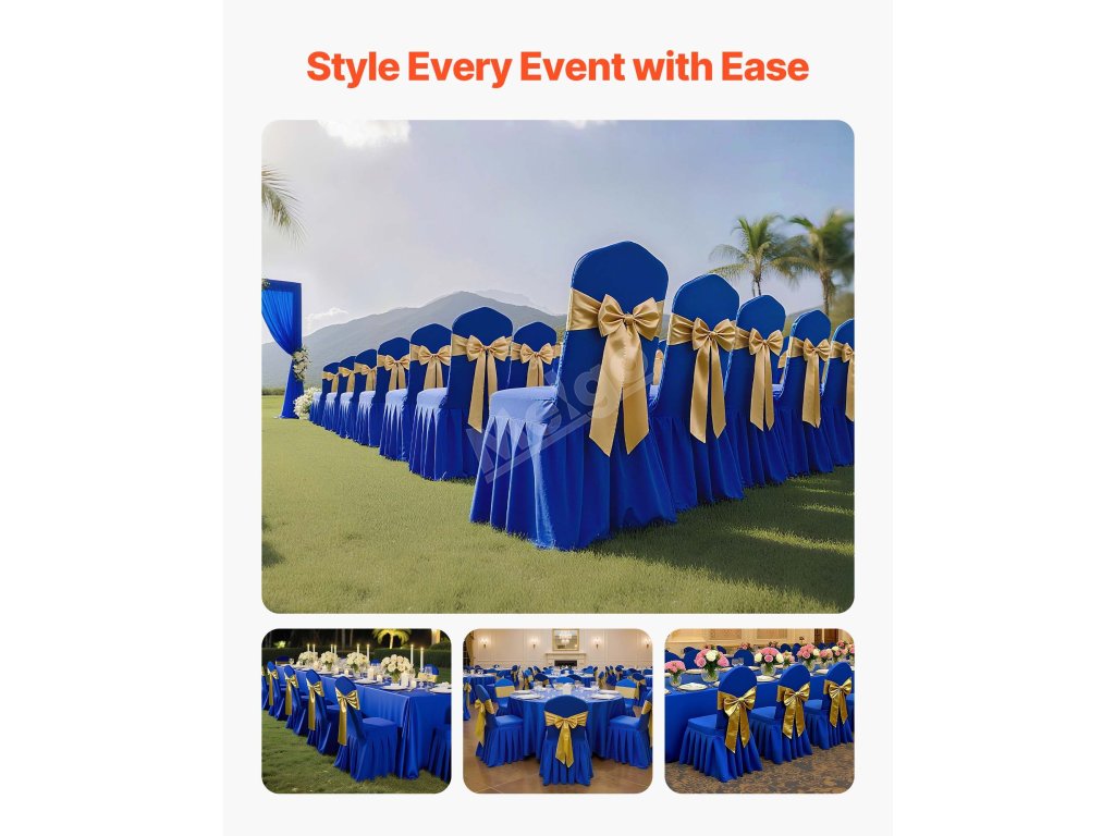 Tato elegantní sada potahů na banketové židle je vyrobena z vysoce kvalitní strečové spandexové tkaniny a zvýrazní jednotný vzhled vašich židlí. Je ideální pro svatby, promoce, narozeniny a další zvláštní příležitosti a dodá každé události nádech sofistikovanosti a stylu.