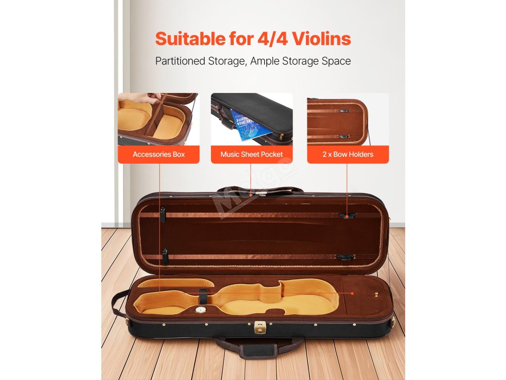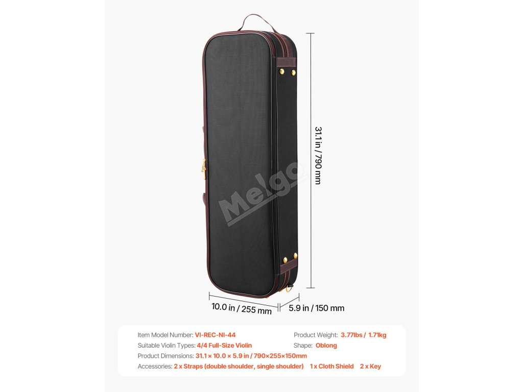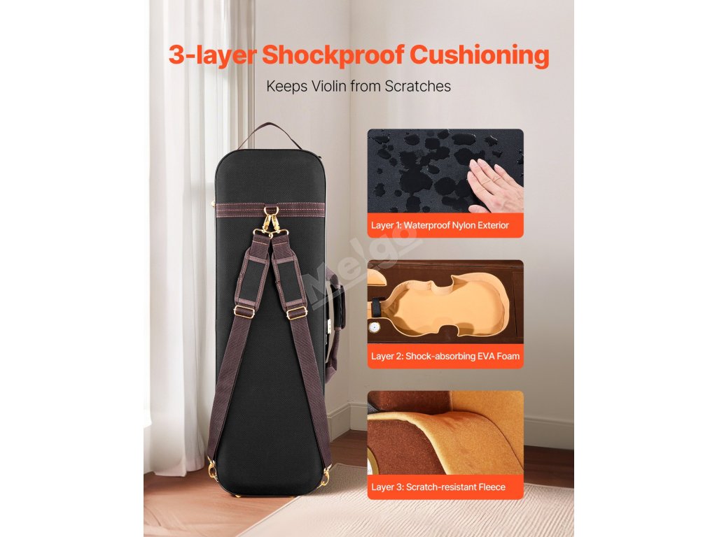 Toto pouzdro na 4/4 housle je navrženo s praktickou podložkou na zavěšení, která pomáhá snižovat otřesy způsobené pohybem během cestování. Vyplňuje také prostor mezi houslemi a vnitřkem pouzdra, čímž pomáhá předcházet otřesům, tření nebo povrchovým stopám na cestách.