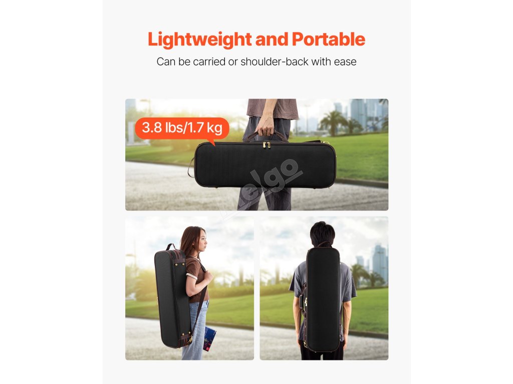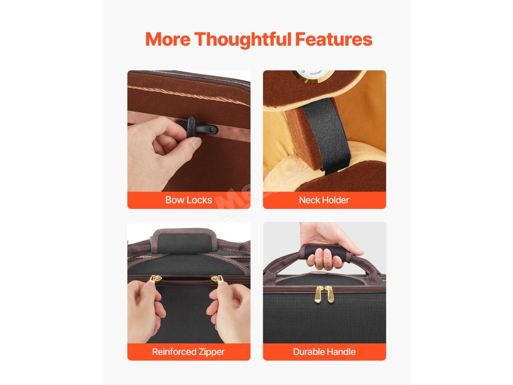 Toto pouzdro na housle minimalizuje nárazy při přepravě. Má několik přihrádek s dostatkem místa pro držák smyčce, potřeby pro údržbu, nástroje pro loutnu, notový papír a další. Díky své lehké konstrukci jej můžete pohodlně přenášet přes rameno nebo v ruce, ať už jdete kamkoli.