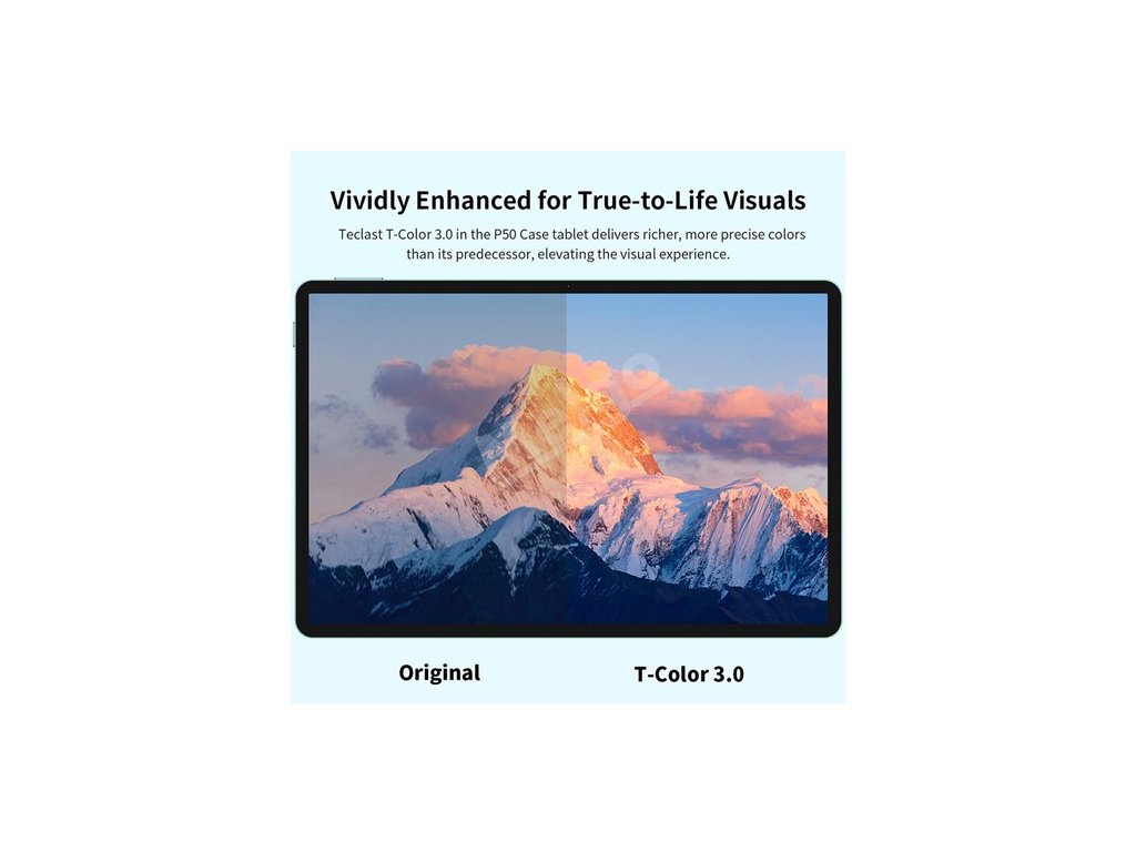 na 11palcové obrazovce si užijete pohlcující vizuální zážitek. Díky rozlišení 1280 × 800 a pokročilé technologii T-Color 3.0 je každý obraz živý, s bohatšími a realističtějšími barvami, což přináší novou vitalitu do vašeho zážitku ze sledování.