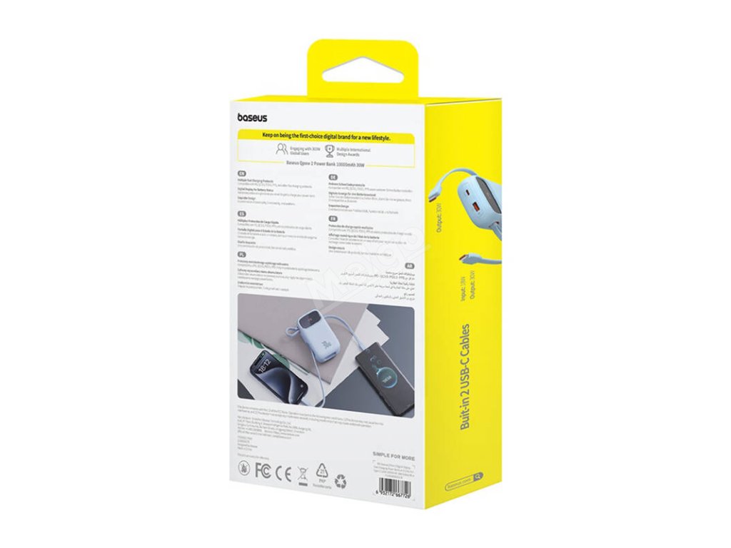 Baseus QPow 2 umožňuje nabíjet až čtyři zařízení současně díky vestavěným kabelům USB-C a dalším portům USB. Tato funkce je ideální pro ty, kteří potřebují nabíjet několik zařízení najednou, například smartphone, tablet, bezdrátová sluchátka nebo chytré hodinky. To vše je možné díky pokročilým protokolům rychlého nabíjení, jako jsou PD3.0, QC3.0, SCP a další.