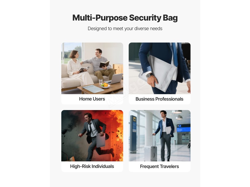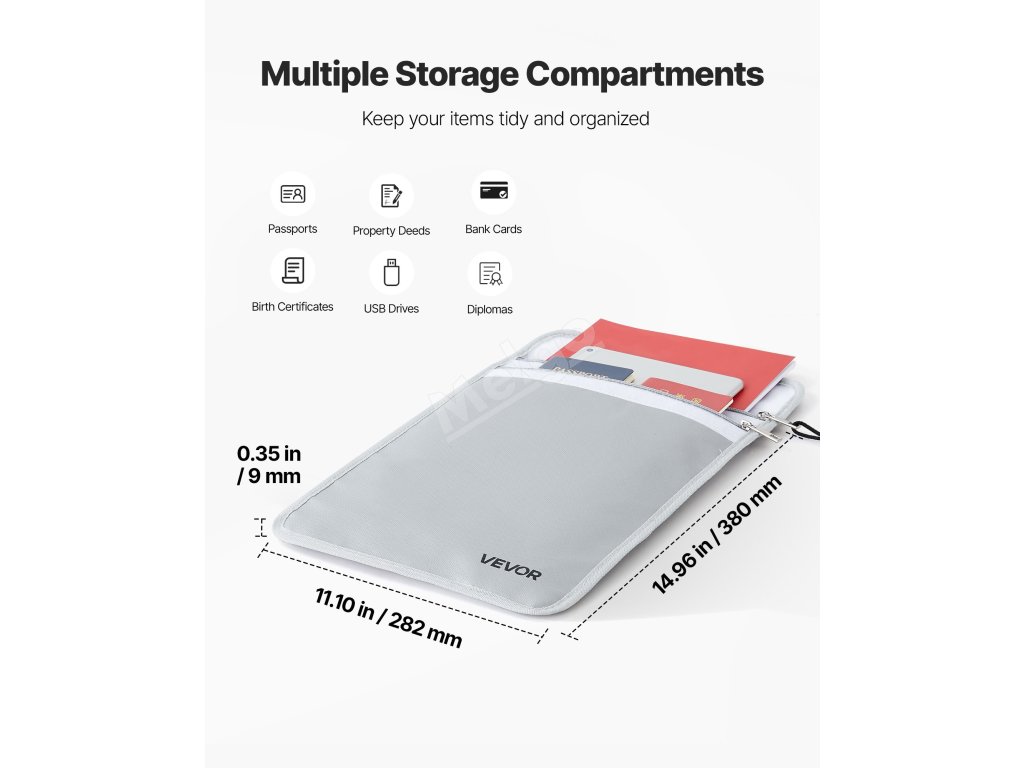 Náš ohnivzdorný sáček je vyroben z prachotěsného silikonu, skleněných vláken a hliníkové fólie a vydrží až 2192℉/1200 ℃. Od náhlého požáru až po déšť nebo prach udrží důležité složky a vybavení v bezpečí a poskytne spolehlivou péči o cennosti při každodenním používání.
