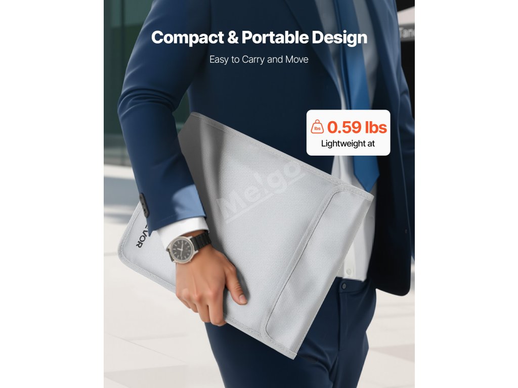 Tato ohnivzdorná taška odolává teplotě 2192℉/1200 ℃ a nepropouští vodu a prach. Váží pouhých 0,59 lbs/0,27 kg a nabízí vrstvené úložiště pro soubory a zařízení. Zdokonalený vodotěsný zip udrží předměty v suchu, takže je užitečná doma, v kanceláři nebo na cestách.