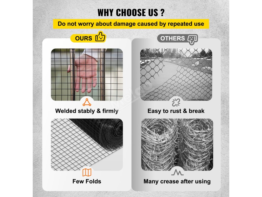 Po svaření potaženém vinylem tvoří všechny svařovací body naší role drátěného pletiva spolehlivou svařovací strukturu. Po opakovaném použití ji lze také několikrát přetvořit.