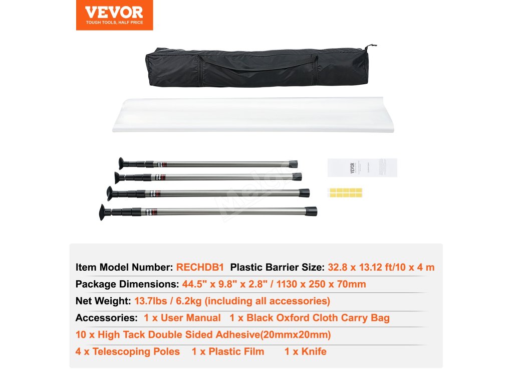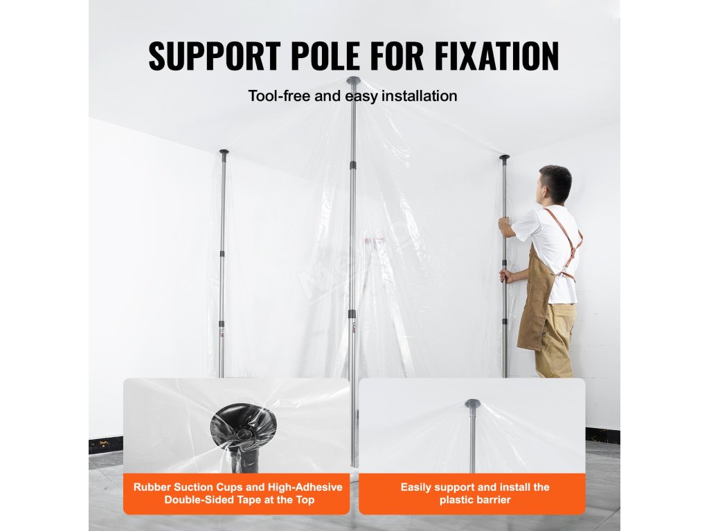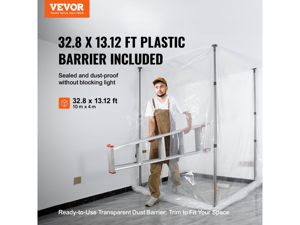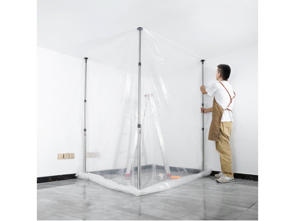 Prachová zábrana 10 Ft, 4 teleskopické tyče, 32.8×13.12 Ft fólie