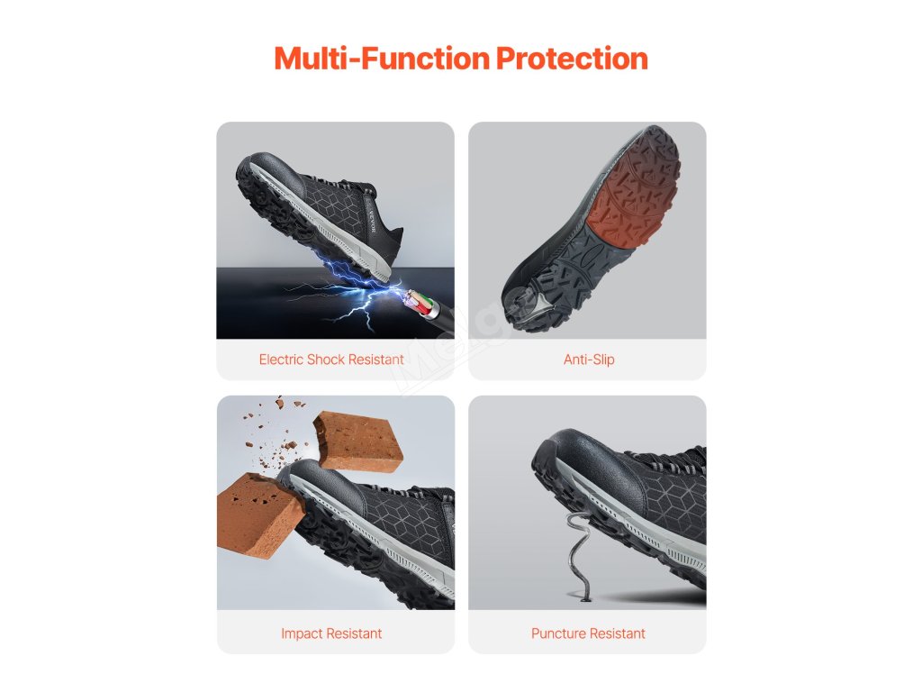 Túto obuv môžete bez obáv nosiť v skladoch, garážach, továrňach a na stavbách. Vďaka rôznym ochranným prvkom budú vaše nohy v bezpečí bez ohľadu na prostredie.