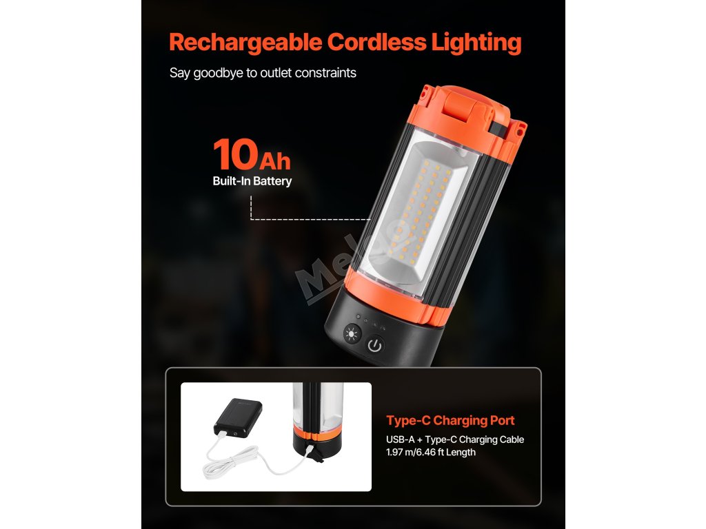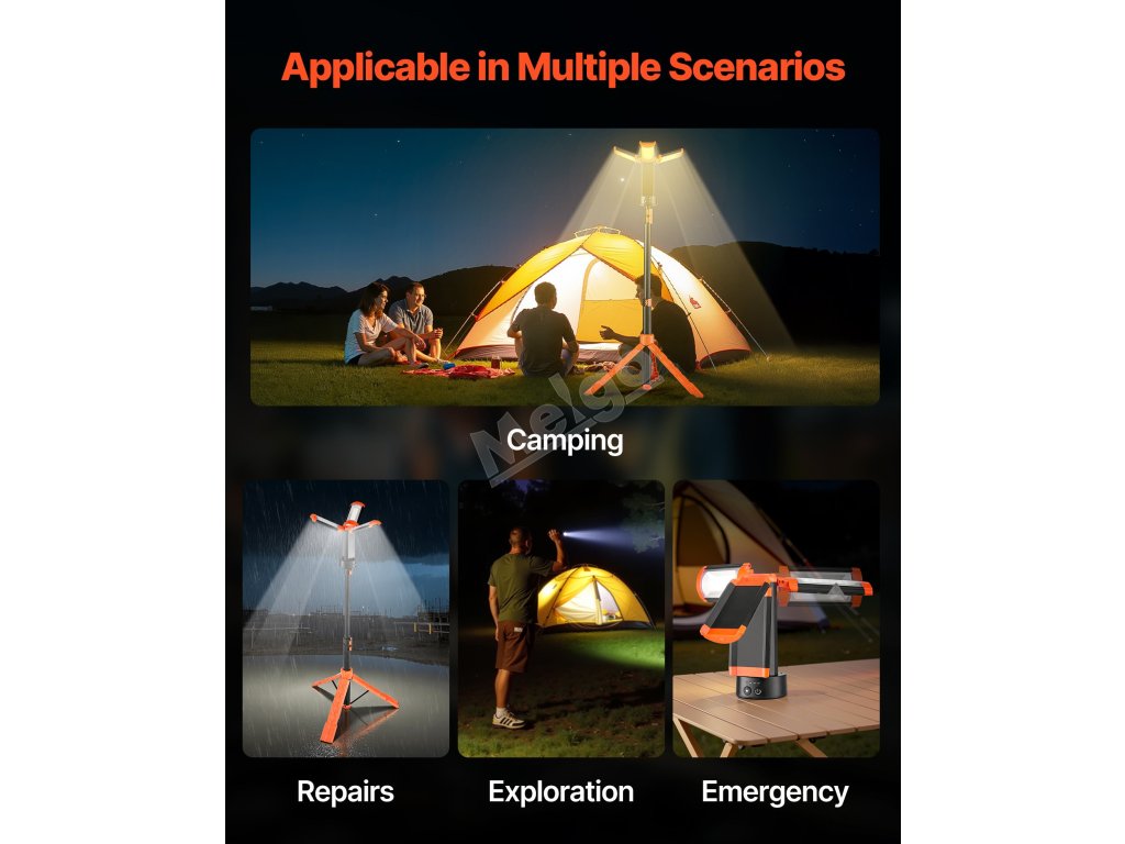 Toto přenosné pracovní světlo je vybaveno vestavěnou baterií s kapacitou 10 Ah a umožňuje dlouhodobé osvětlení bez externího zdroje energie. Je vhodné pro venkovní stavby, kempování, nouzové situace při výpadku proudu a další.