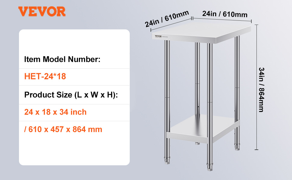 Pracovní nerezový stůl 24×18×34 inch 3 nastavitelné výšky pro kuchyni