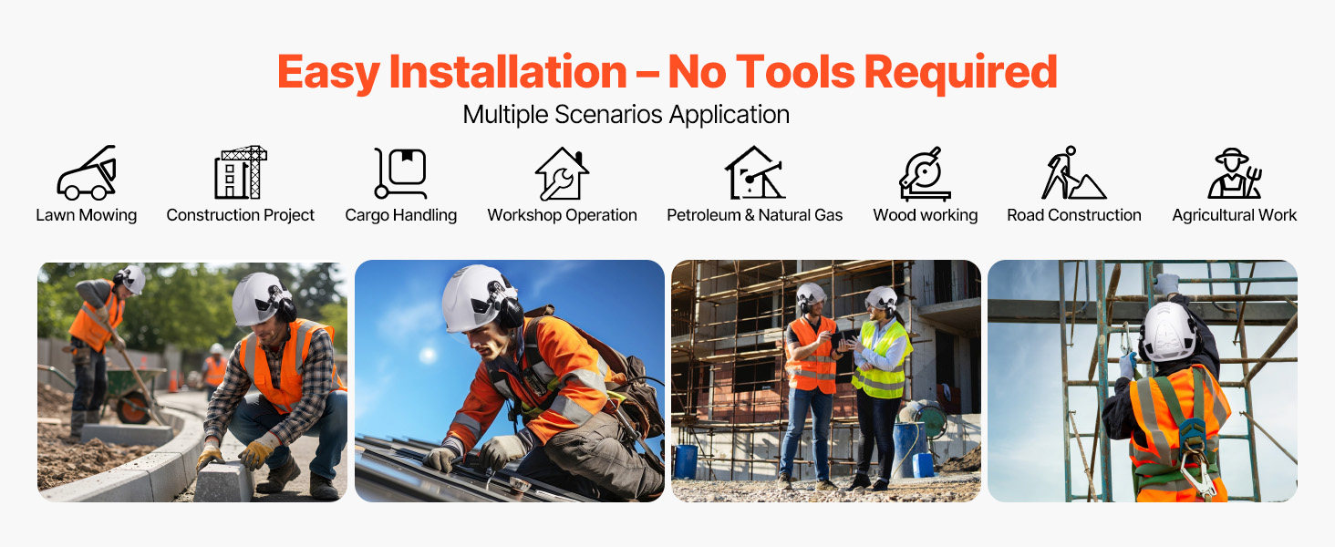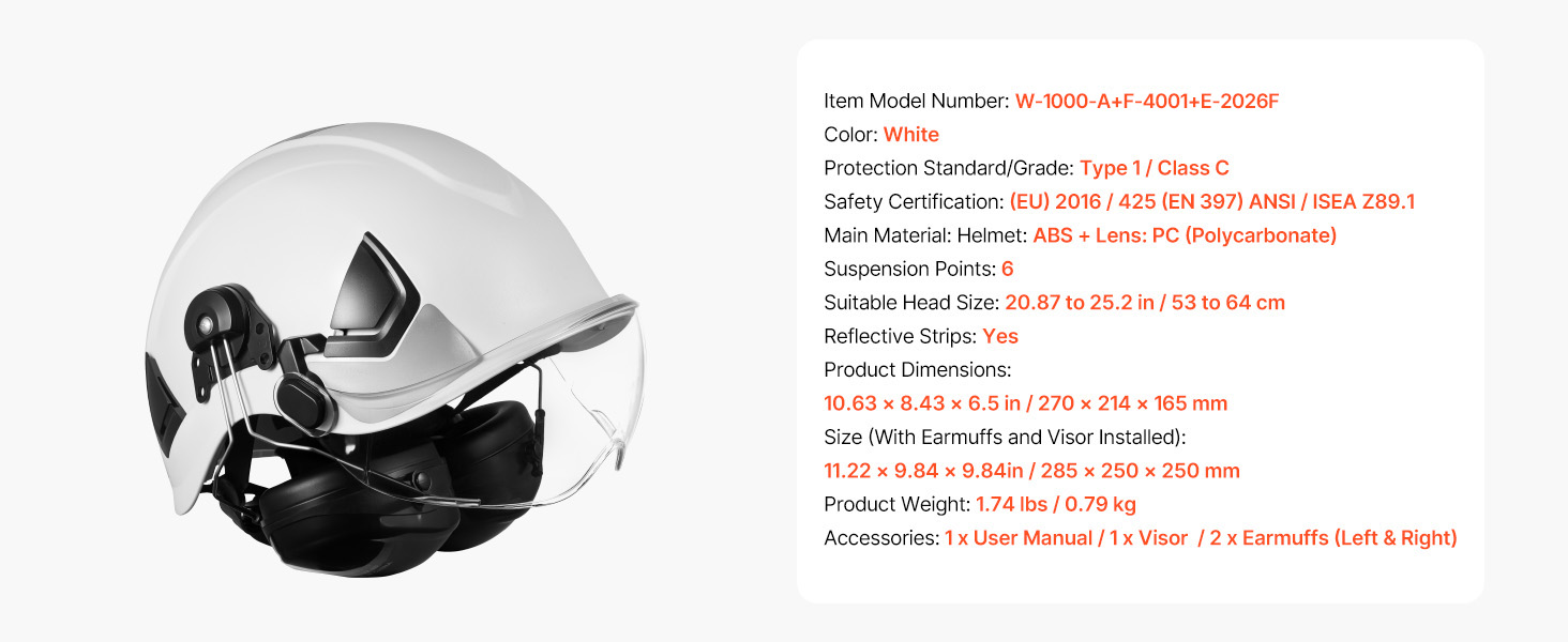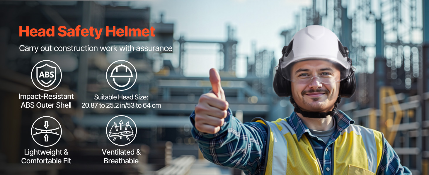Bezpečnostní přilba s certifikací ANSI/ISEA Z89.1 má pevnou, ale lehkou skořepinu z ABS, která chrání před nárazem a úrazem elektrickým proudem. Šestibodové zavěšení s ráčnovým knoflíkem je vhodné pro velikosti 20,87 až 25,2 palce/53 až 64 cm a poskytuje prodyšné, bezpečné a pohodlné nošení po celý den.