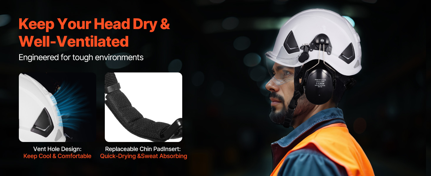 Vestavěné větrací otvory této přilby zlepšují cirkulaci vzduchu a pomáhají vám zůstat v chladu. Ve spojení s rychleschnoucí podložkou pod bradu, která absorbuje pot, zajišťuje naše ochranná přilba pro tvrdé klobouky prodyšnost a sucho za všech povětrnostních podmínek.