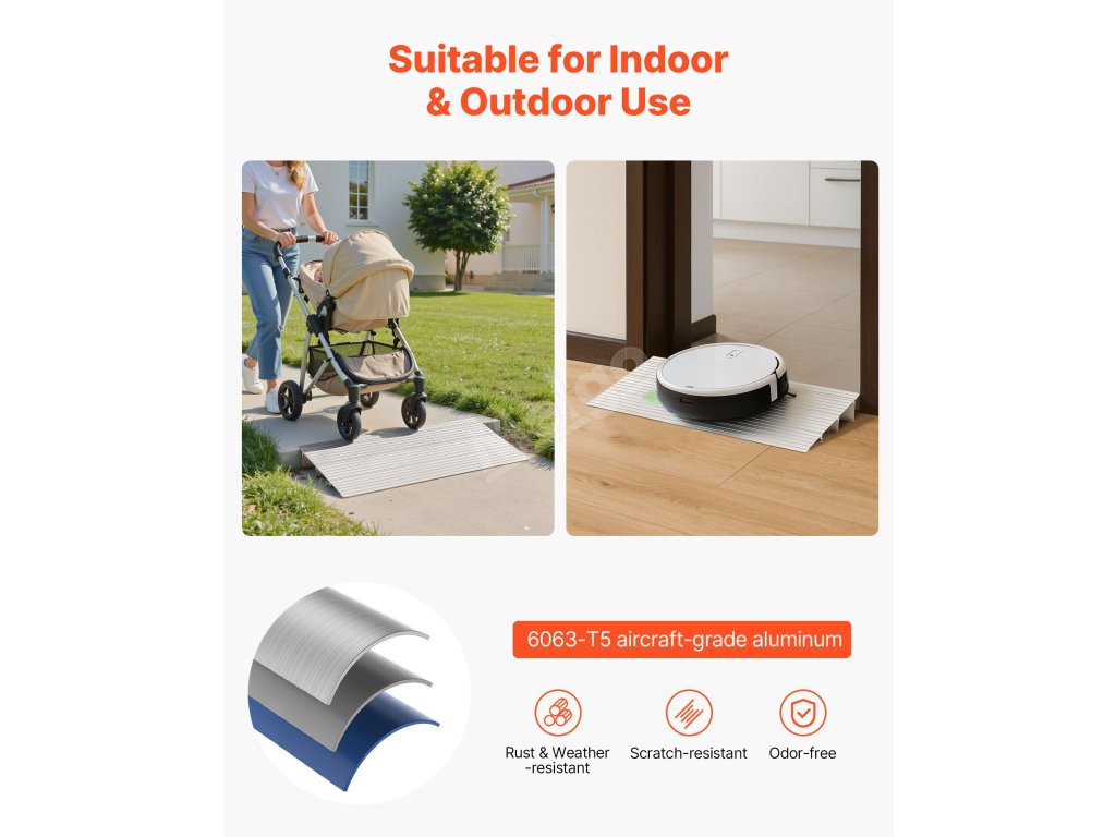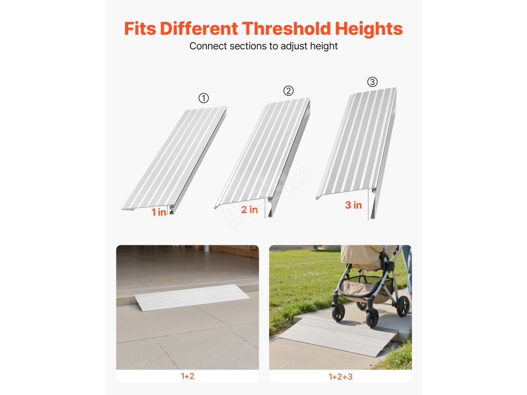 Umístěte nájezdovou rampu pro přední dveře na prahy, garážové rampy nebo obrubníky a snadno se odvalujte! Třípalcové zvýšení se krásně přizpůsobí, takže kolečka hladce kloužou, aniž by narážela nebo se zasekávala.