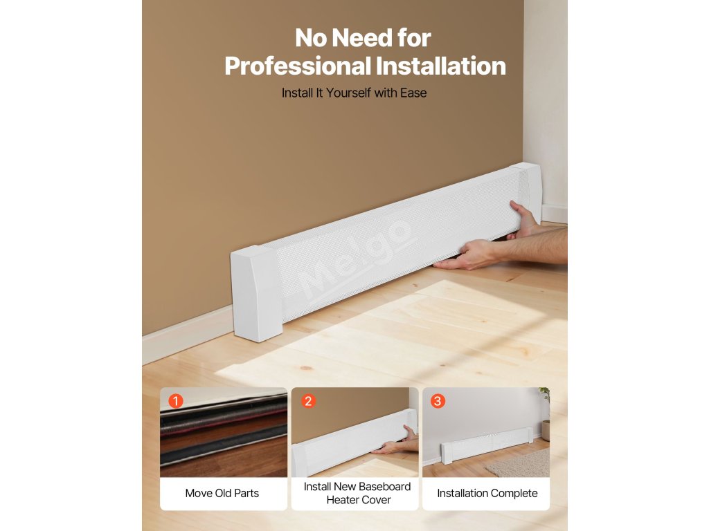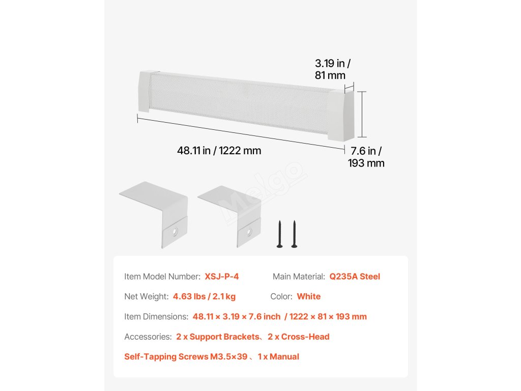 Tento náhradní kryt podlahového topení je vhodný pro různá topná tělesa a je vyroben z odolné oceli s práškovým nástřikem pro snadné čištění. Účinné větrání zabraňuje přehřátí a zajišťuje rovnoměrné rozložení tepla. Snadno se instaluje a jeho elegantní bílý design doplní každý domácí interiér.