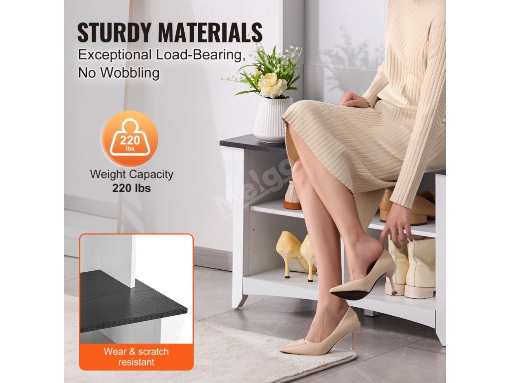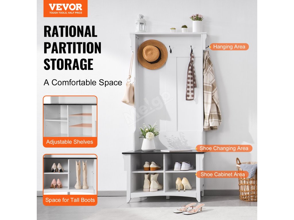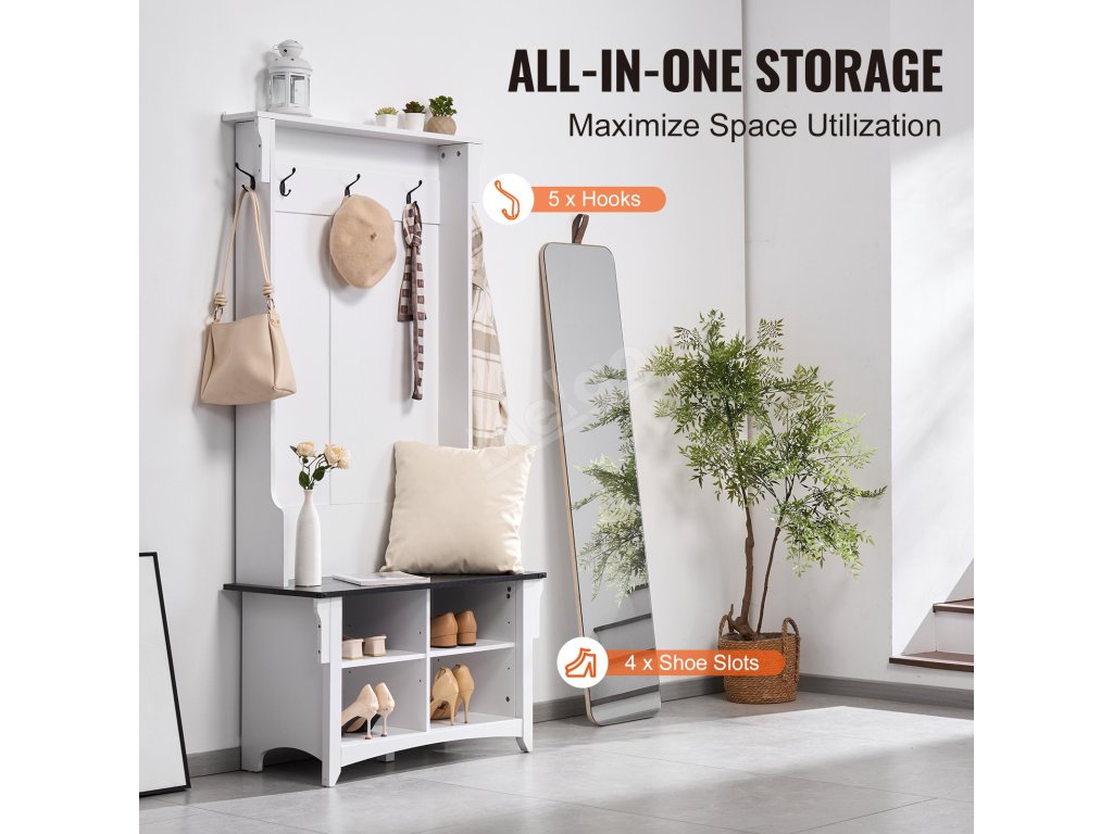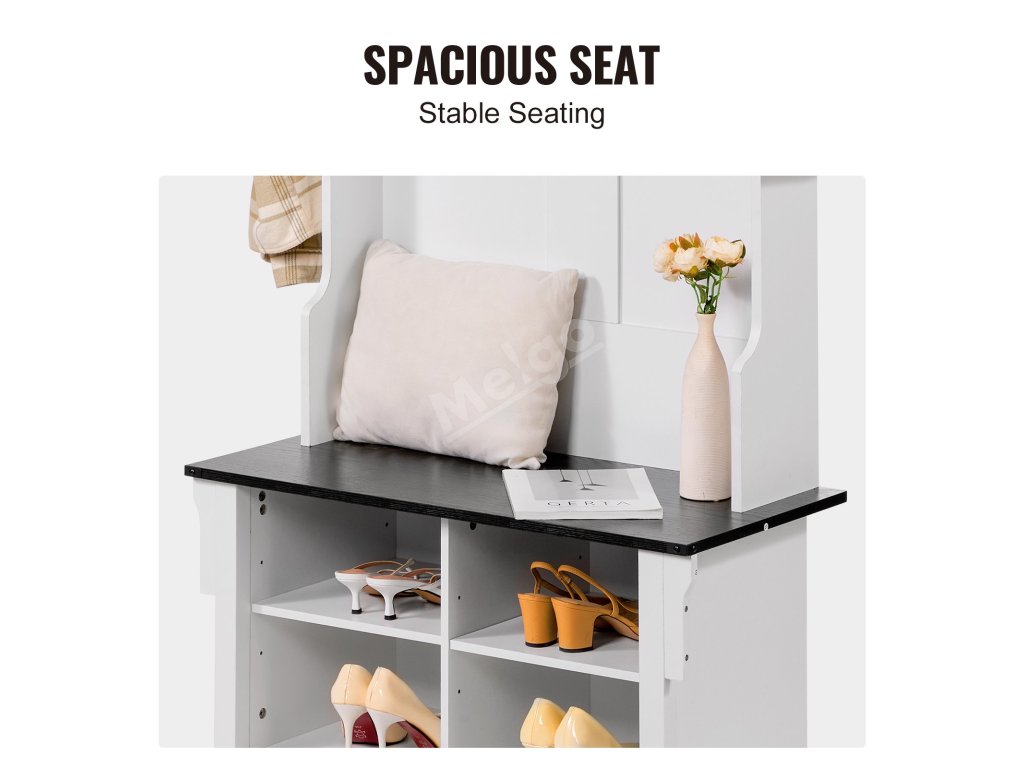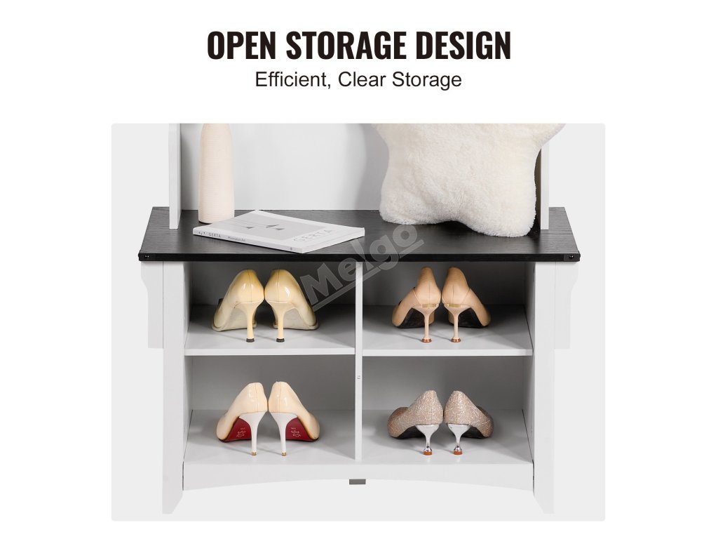 Tento bílý předsíňový strom má široké a hluboké přihrádky, do kterých se vejdou všechny druhy bot a zůstanou na dosah. Jeho prostorný design je vhodný pro rodiny, kterým pomáhá předcházet nepořádku a udržovat pořádek ve věcech.
