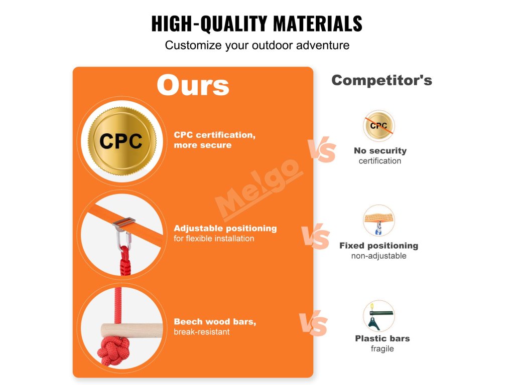 Naše tlakově lité popruhy s přezkami ve spojení s dvojitými napínáky zajišťují stabilitu popruhů, zvyšují odolnost proti větru, dešti a slunečnímu záření, a tím prodlužují životnost slackline odolné proti povětrnostním vlivům.