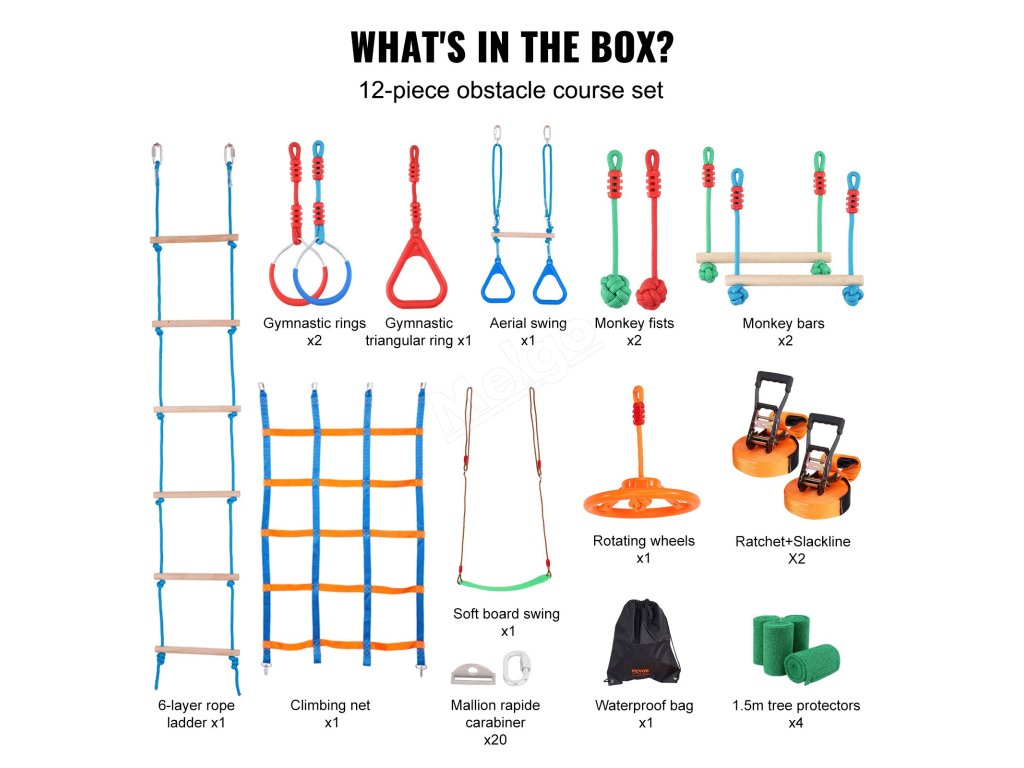 Překážková dráha pro děti 2 × 50 ft slackliny, 500lbs, 12 překážek
