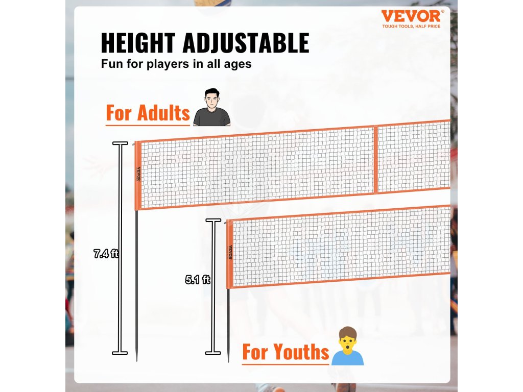 Tento profesionální volejbalový set nabízí nižší výšku 5,1 stopy, která je ideální pro mladší účastníky, zatímco vyšší nastavení 7,4 stopy je určeno pro dospělé hráče, což zajišťuje, že se do hry mohou zapojit všichni bez rozdílu věku při preferované výšce sítě.